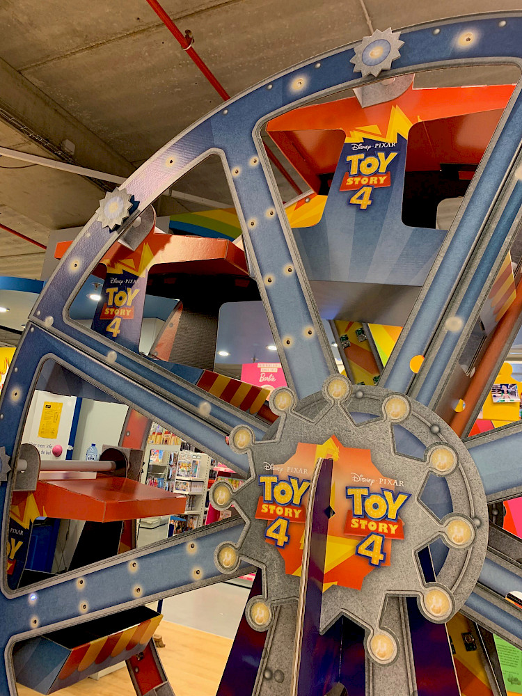 Jak wprowadzić atmosferę filmu do sklepu? Firma Walt Disney Company zrozumiała to i przygotowała na jedną z największych tegorocznych premier, ToyStory 4, fantastyczny diabelski młyn o wysokości 2,5 metra na powierzchnię sklepową który mogliśmy wyprodukować. Integracja diod LED daje dodatkowe wsparcie dla tego efektu i sprawia, że miejsce to przyciąga wzrok.